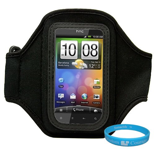 ▷▷▷Blackfriday Black Durable Moisture Resistant Neoprene Protective Exercise Workout Armband with Adjustable Velcro Strap for Verizon Wireless New HTC Droid Incredible 2 / HTC Incredible S + INCLUDES!!! SumacLife TM Wisdom Courage Wristband